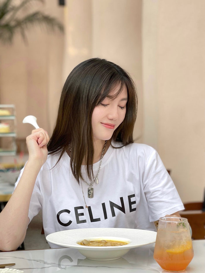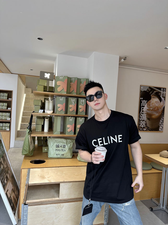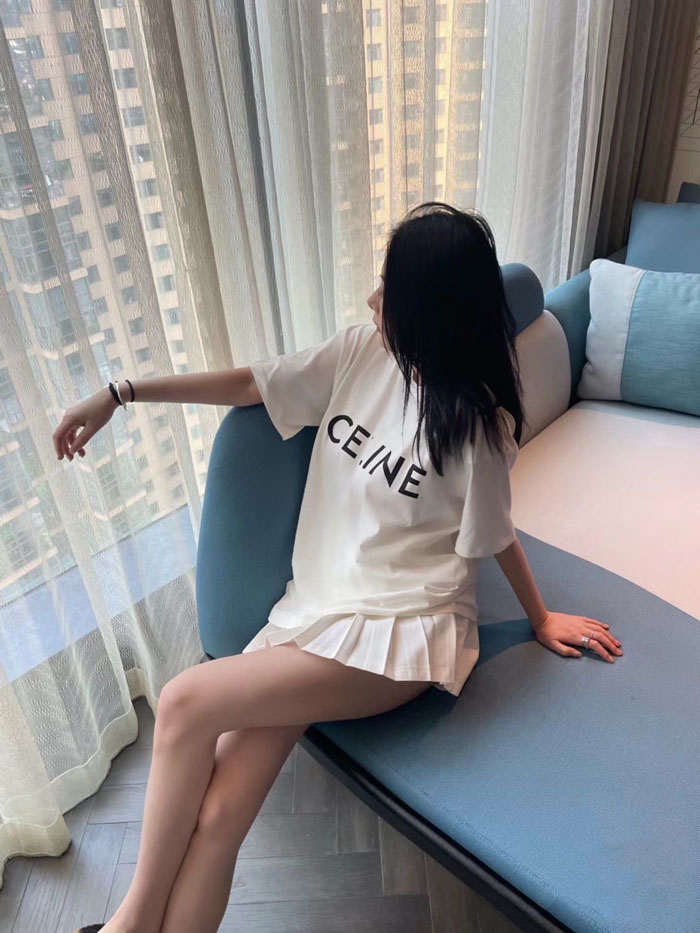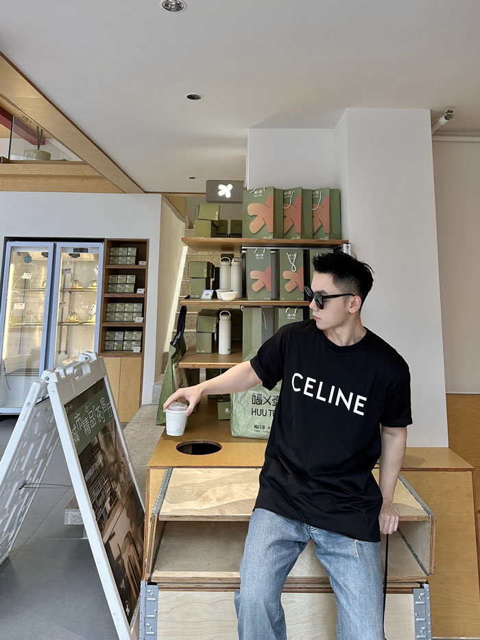 胸元中央には、シンプルな大文字サンセリフ体の「CELINE」ロゴプリントを配置。フォントがシャープで洗練されており、ブランドの認知度を最大限に高めています。背面は完全に無地のデザインで、余分な装飾が一切なく、極限までシンプルに仕上げられており、さりげなく高級感が漂います。
