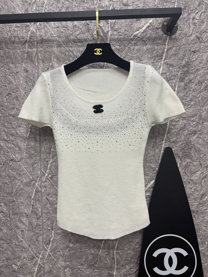 ハイブランド 半袖 tシャツ レディース シャネル ダブルC ロゴ 刺繍 白Tシャツ きれいめ chanel カジュアル トップス 春 夏 秋 おしゃれ コーデ 大人可愛い