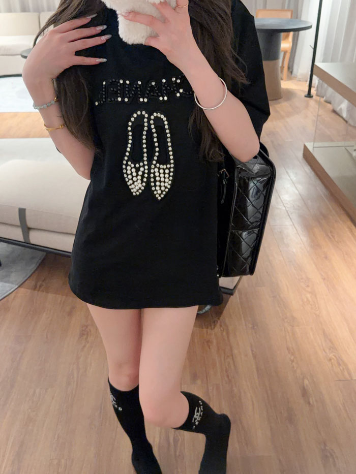 日常のコーデを瞬時に格上げする、高級感あふれるCHANELブラック T シャツが登場しました。