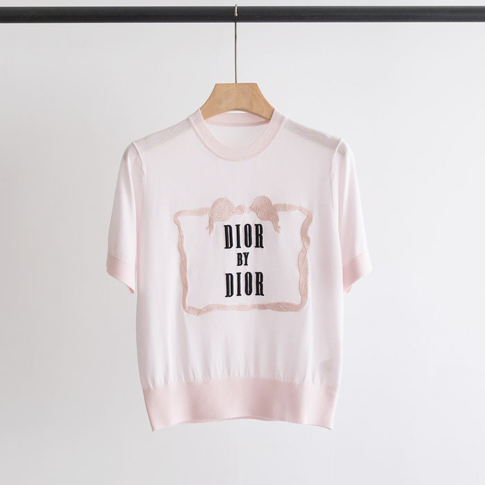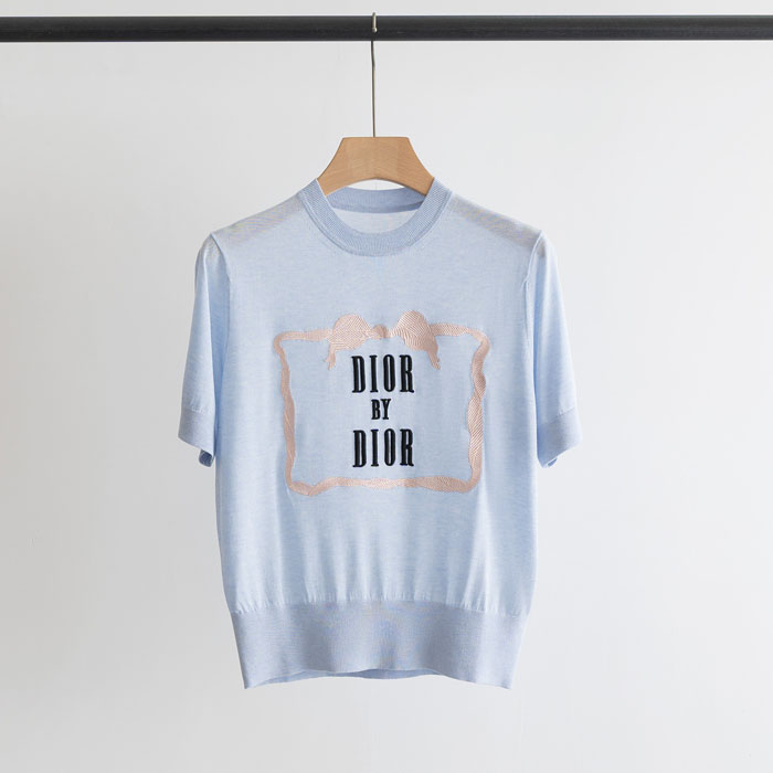 人気 新品 ディオール T シャツ リボン刺繍 DIOR BY DIOR アイスニット レディース 正肩 半袖