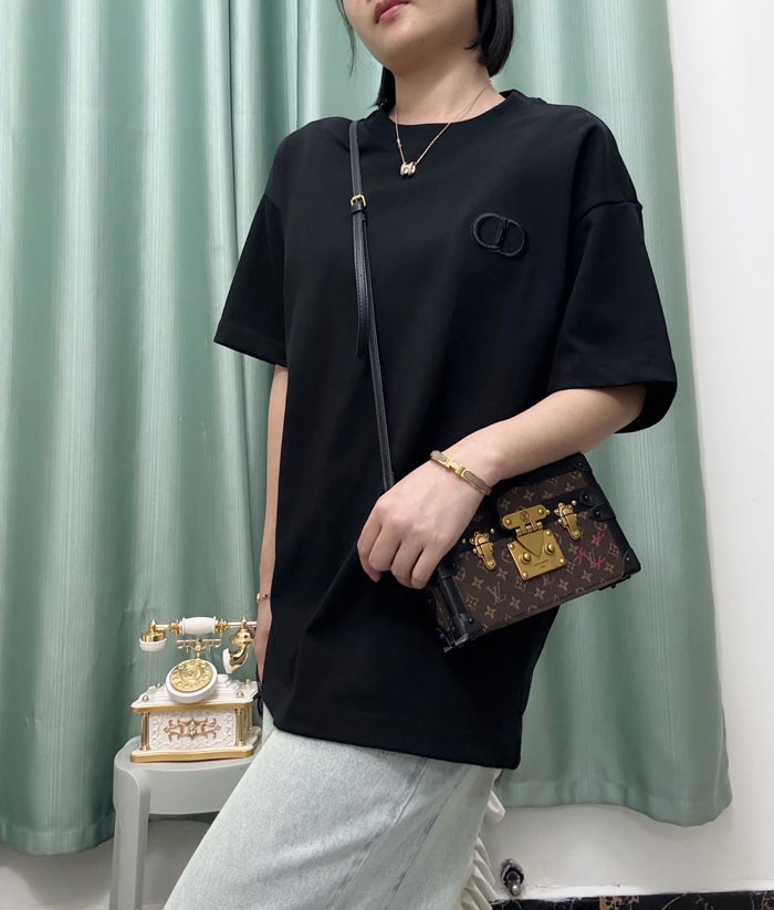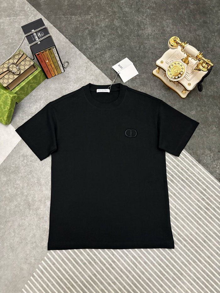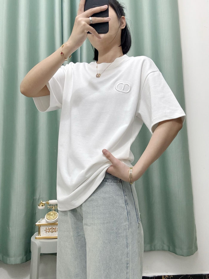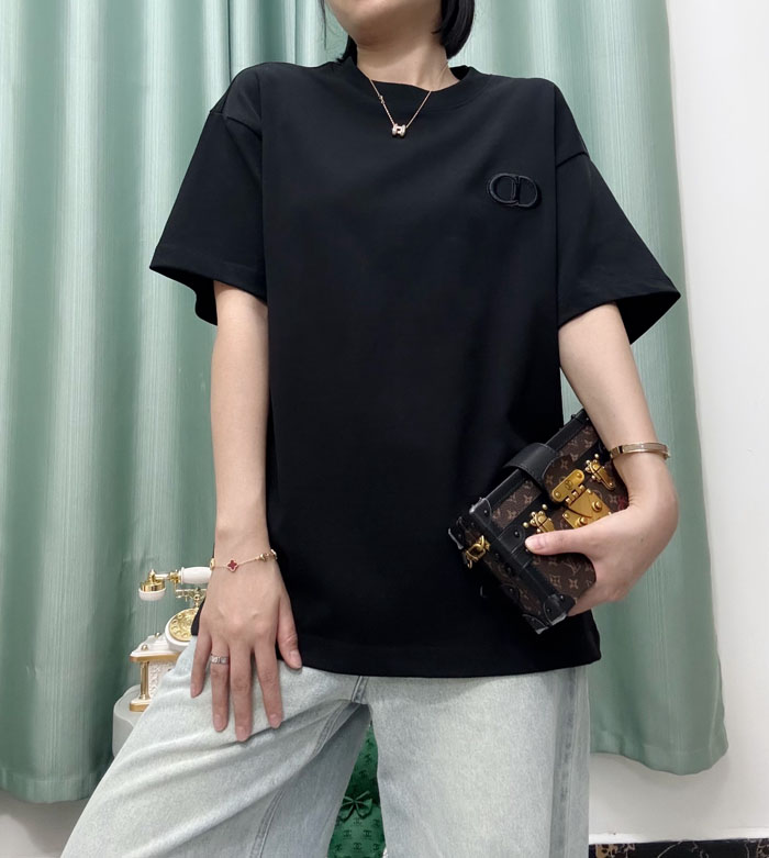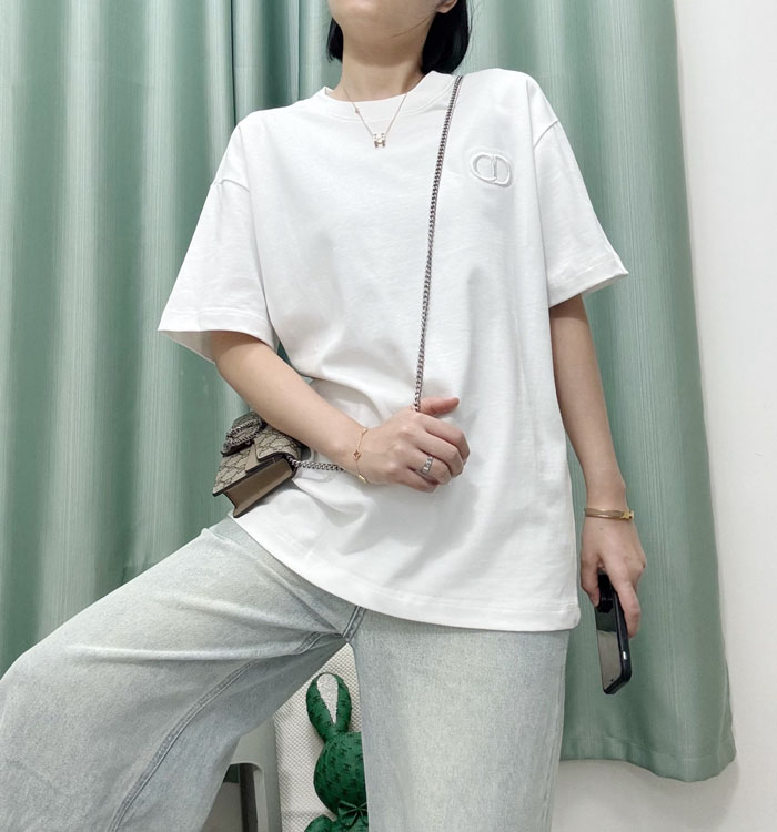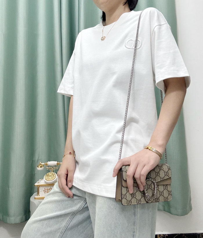 ディオール シンプルなデザインのTシャツ CD ロゴ 立体刺繍 ヘビーウェイトコットン オーバーサイズ ユニセックス 半袖