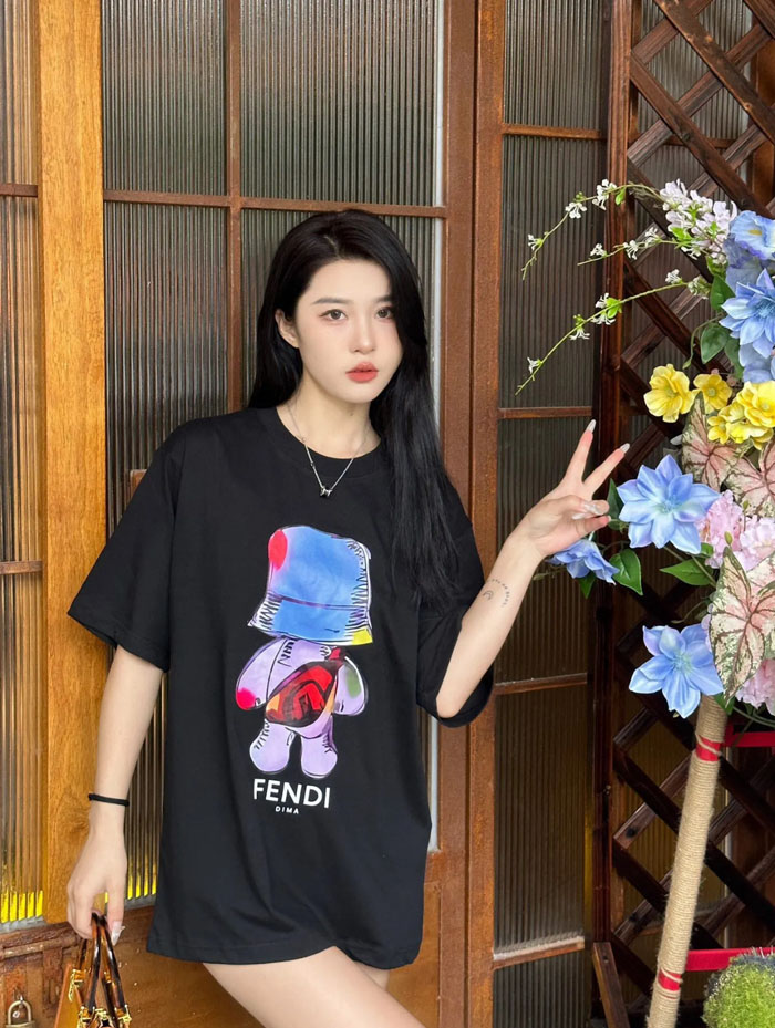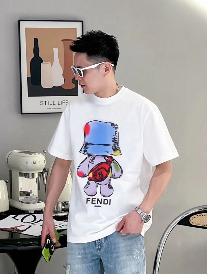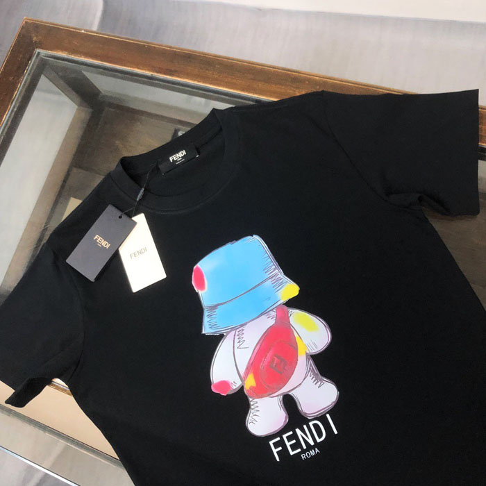 ブランドTシャツ 半袖 FENDI カップルtシャツ ペアtシャツ 夏服 熊柄 可愛い おしゃれ メンズ レディース コーデ お揃い服 フェンディ 大きいサイズ ゆったりトップス 白 黒 オシャレ