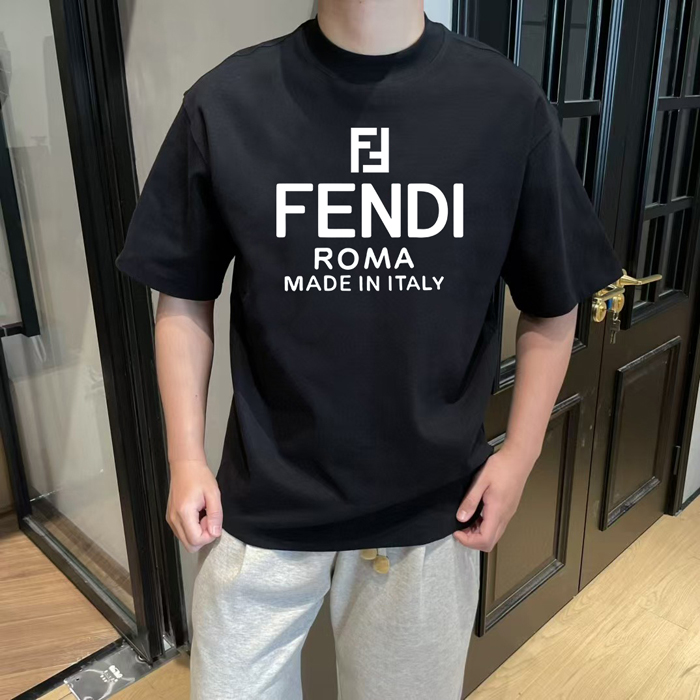 FENDI ロゴ Tシャツ フェンディ風 高品質 コットン 半袖 Tシャツ クルーネック ユニセックス 大きいサイズ 白 黒 春夏新作