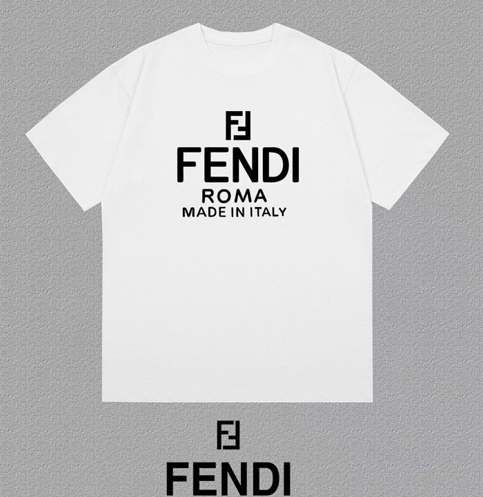 胸元に「FENDI ROMA MADE IN ITALY」のクラシックロゴを大胆にプリントし、