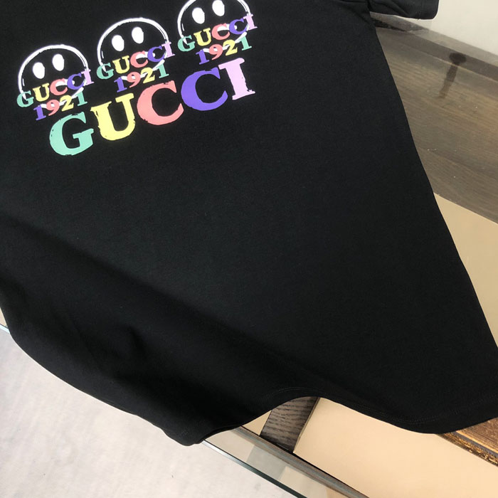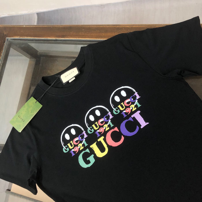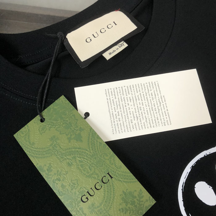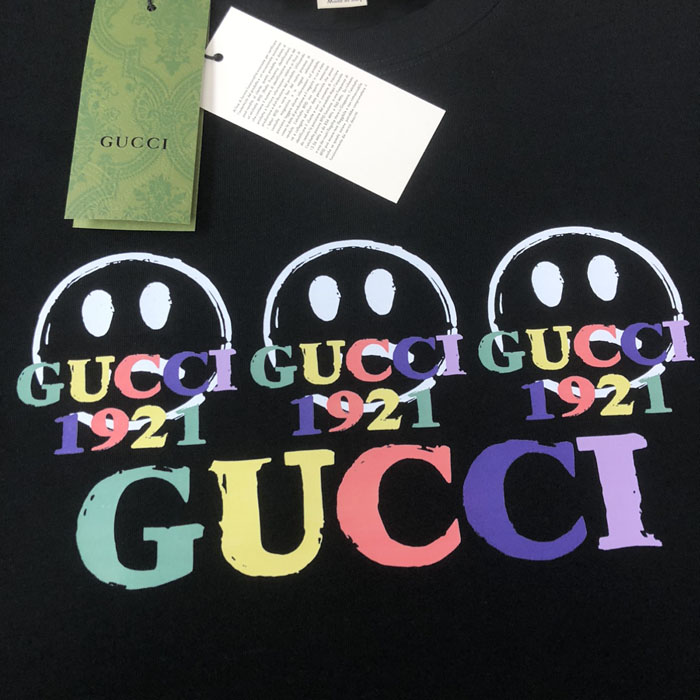 GUCCI スマイリー カラフルロゴ 半袖 T シャツ ブラック 高級感 男女兼用