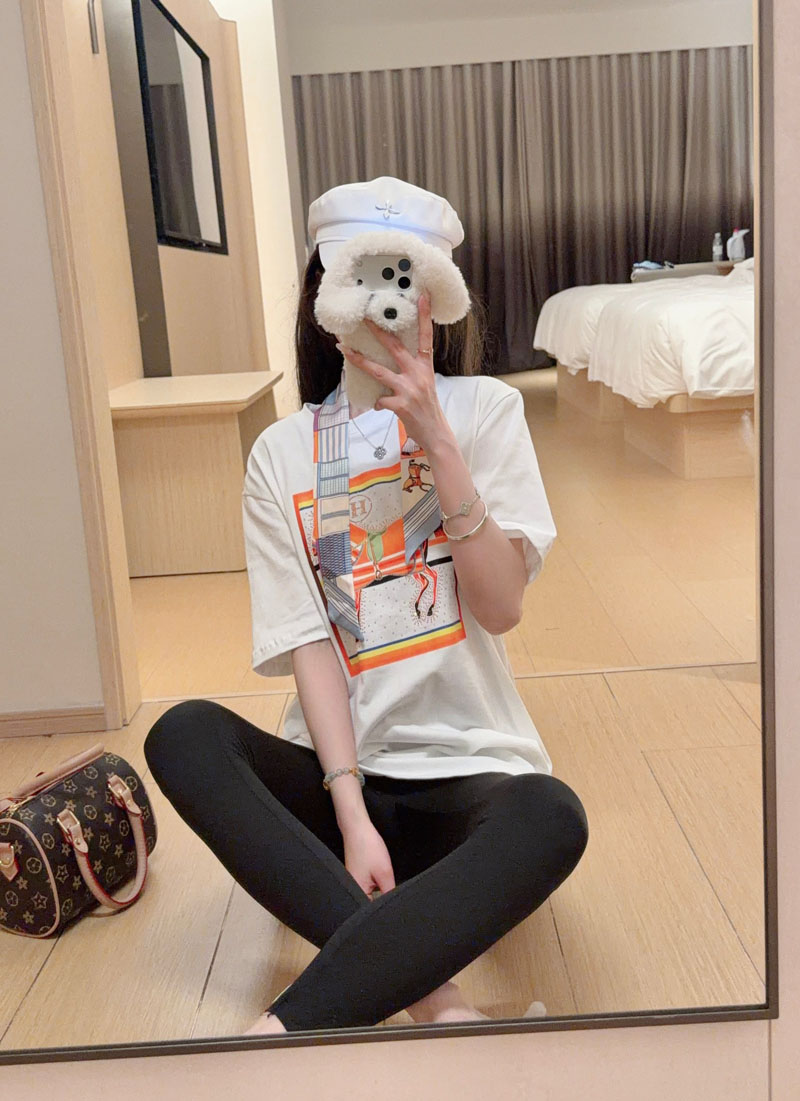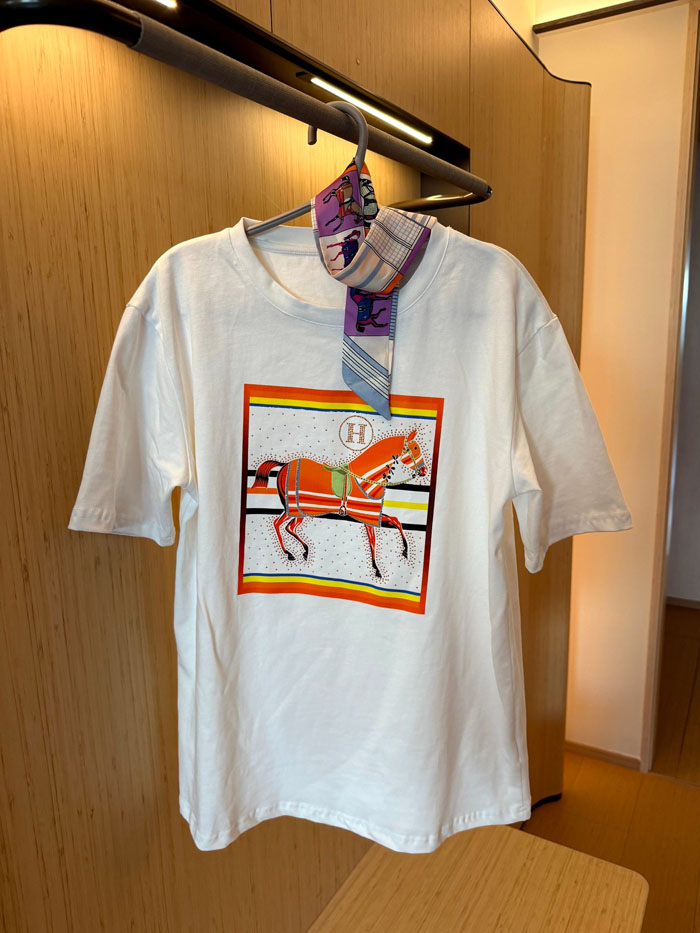 エルメス マキシプリント Tシャツ トップス 綿100% 上品カジュアル Hermes レディース 半袖 Tシャツ 母の日 ギフト