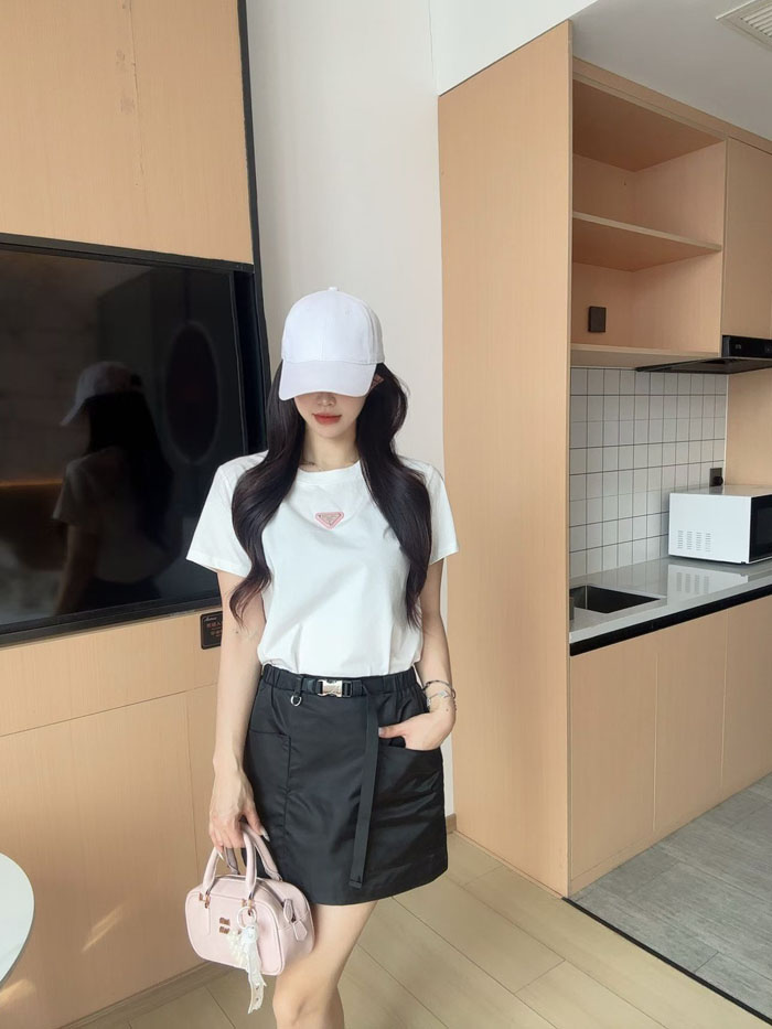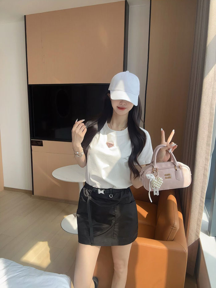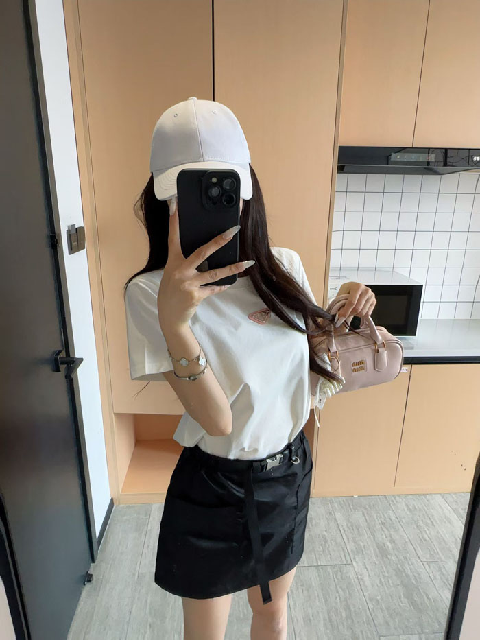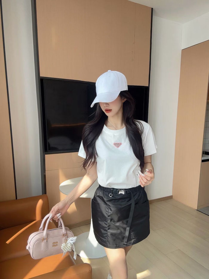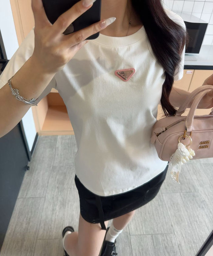 プラダ 半袖Tシャツ レディース クルーネック トライアングルロゴ ショート丈 ホワイト シンプル 可愛い