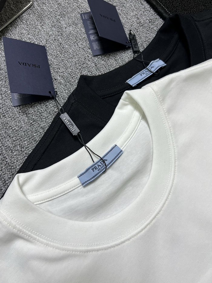 PRADA プラダ 半袖Tシャツ メンズ レディース ロゴ 夏 人気 おしゃれ 体型カバー ホワイト ブラック
